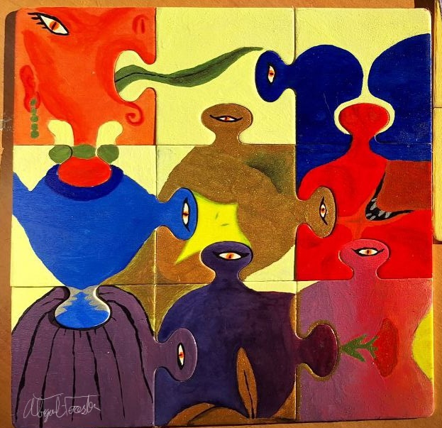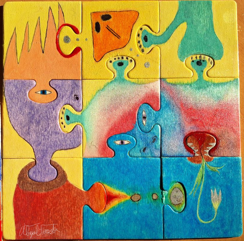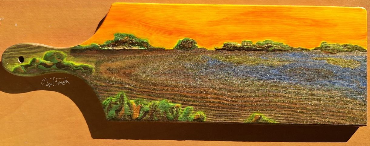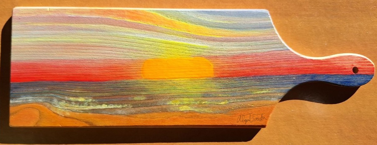 I paint using a combination of watered down acrylics and water color, usually on raw wood but sometimes on canvas or other surfaces.